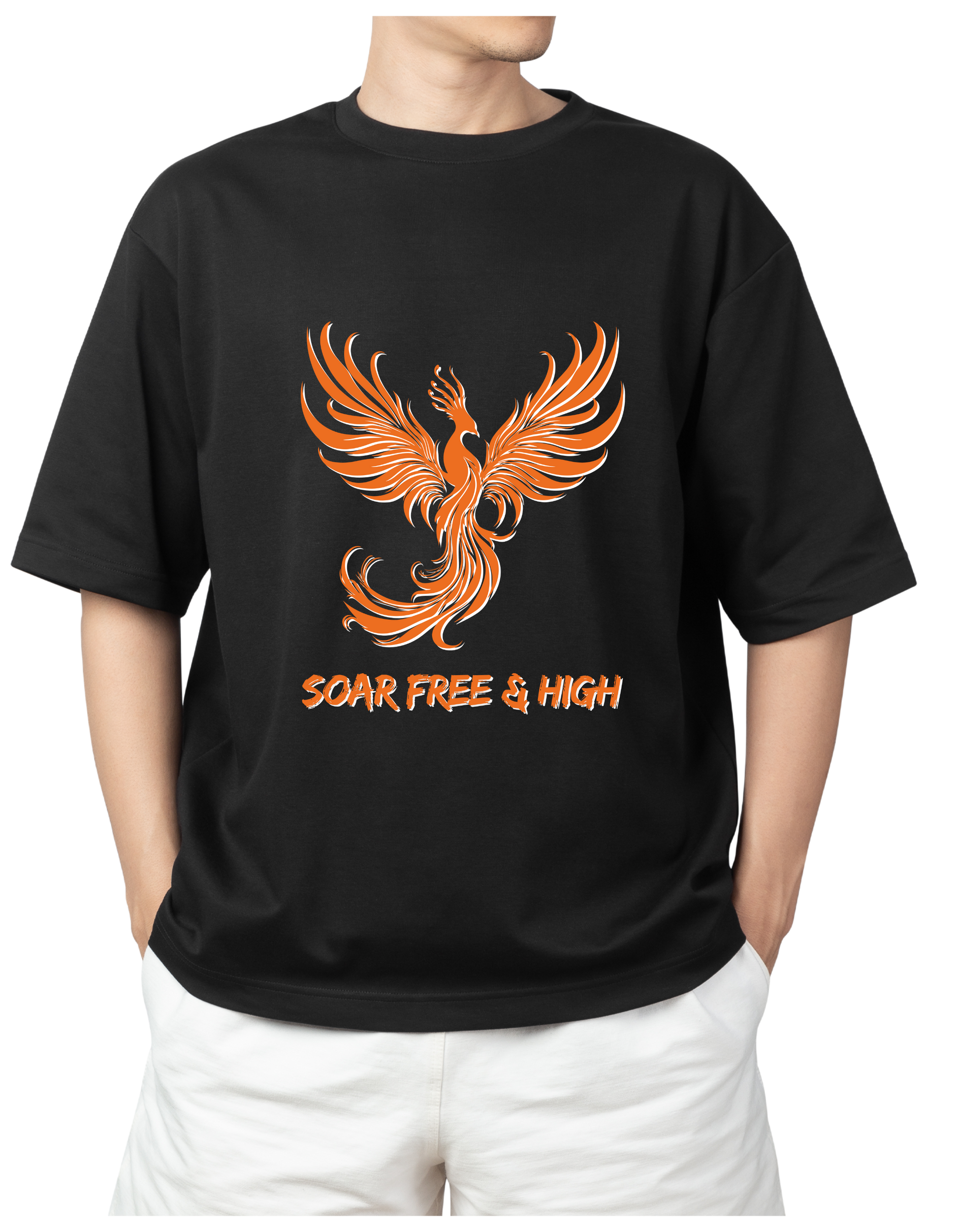 Command the skies with the power of the eagle in this bold oversized t-shirt. Featuring a striking eagle head with extended wings and the powerful message "SOAR HIGH AWAY", this tee radiates confidence, ambition, and independence.